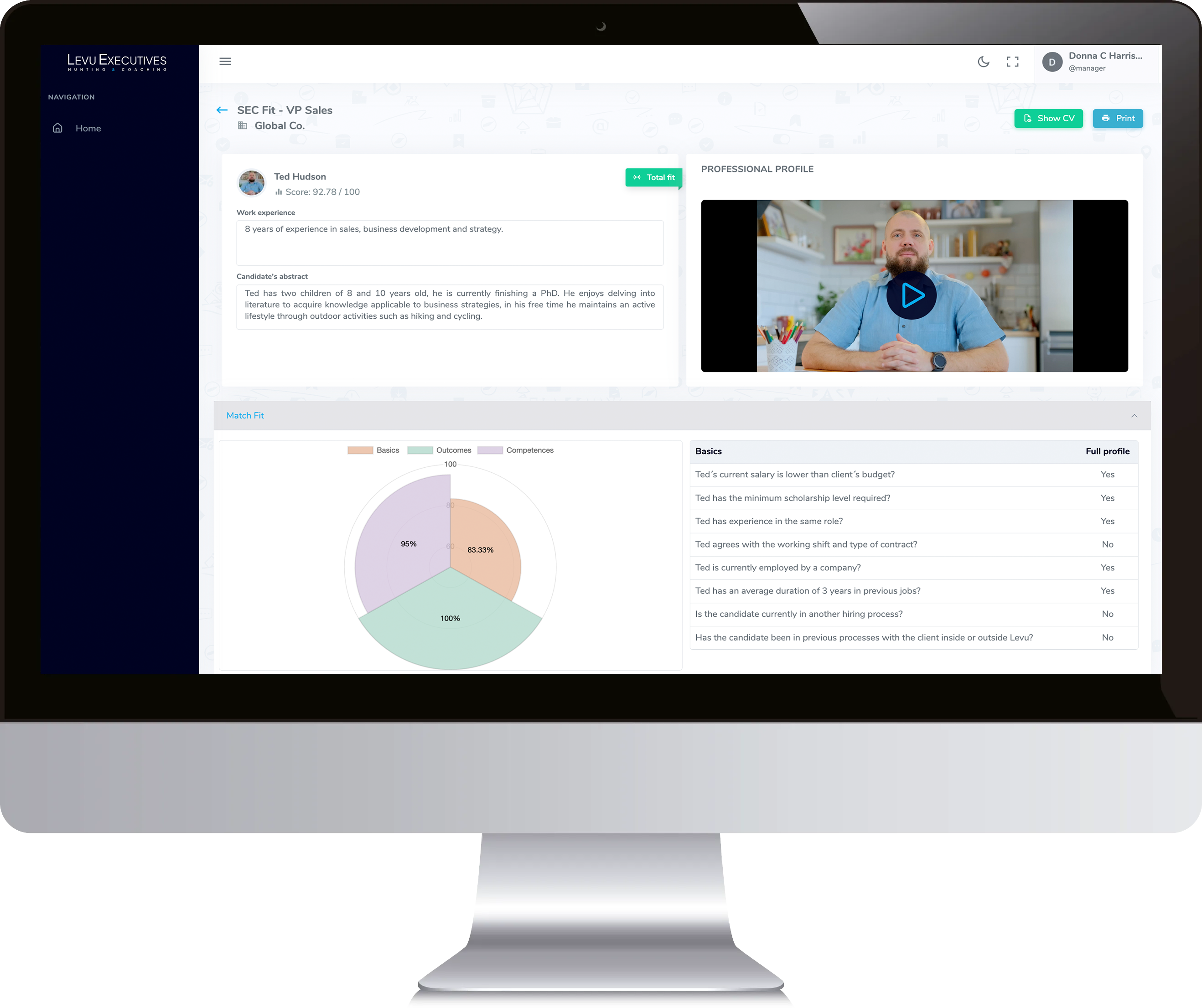 The second is our web app, Levu Dashboard, a platform designed to make it easier for our clients to analyze and understand candidates. Through Levu Dashboard, we provide all the necessary information to thoroughly and succinctly understand the profile of each candidate.